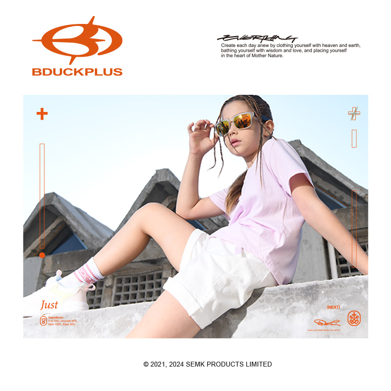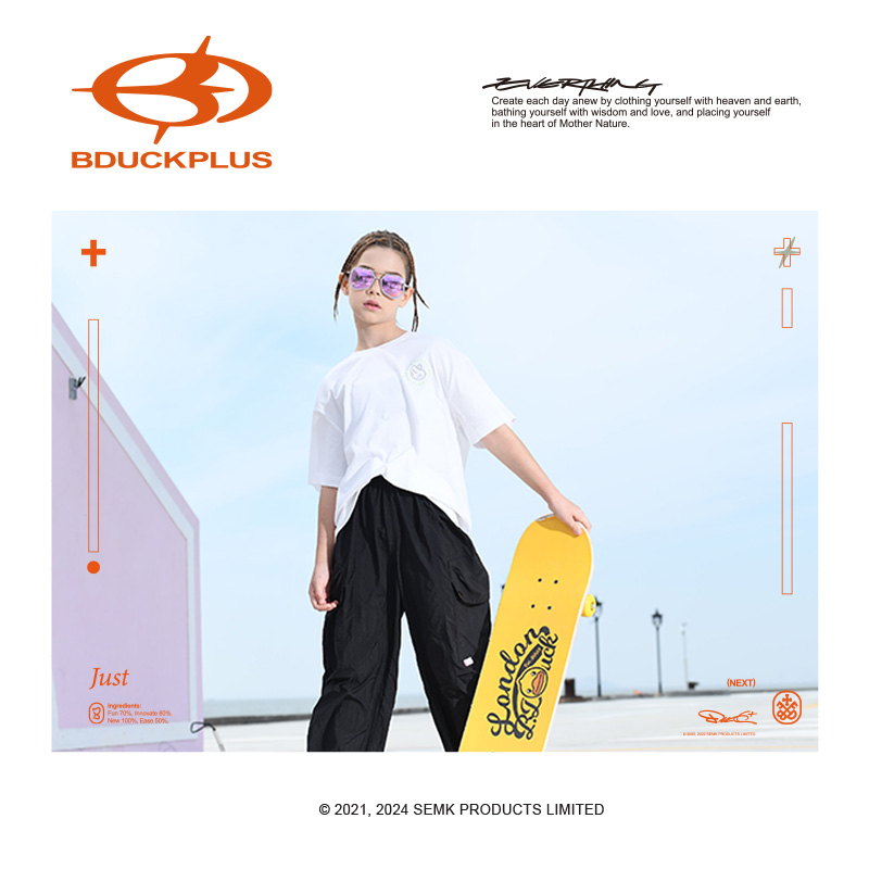 BDUCKPLUS 品牌创立的初心来源于对潮流的探索,对 B.Duck IP 多元文化的解读与重述,传承玩味与精致的精神,以“轻运动文化”概念为突破口,冲出潮流停留于视觉穿搭的表象,重新定义潮流理念,赋予品牌一场景化一圈层化一个性化,打造少年群体社交符号